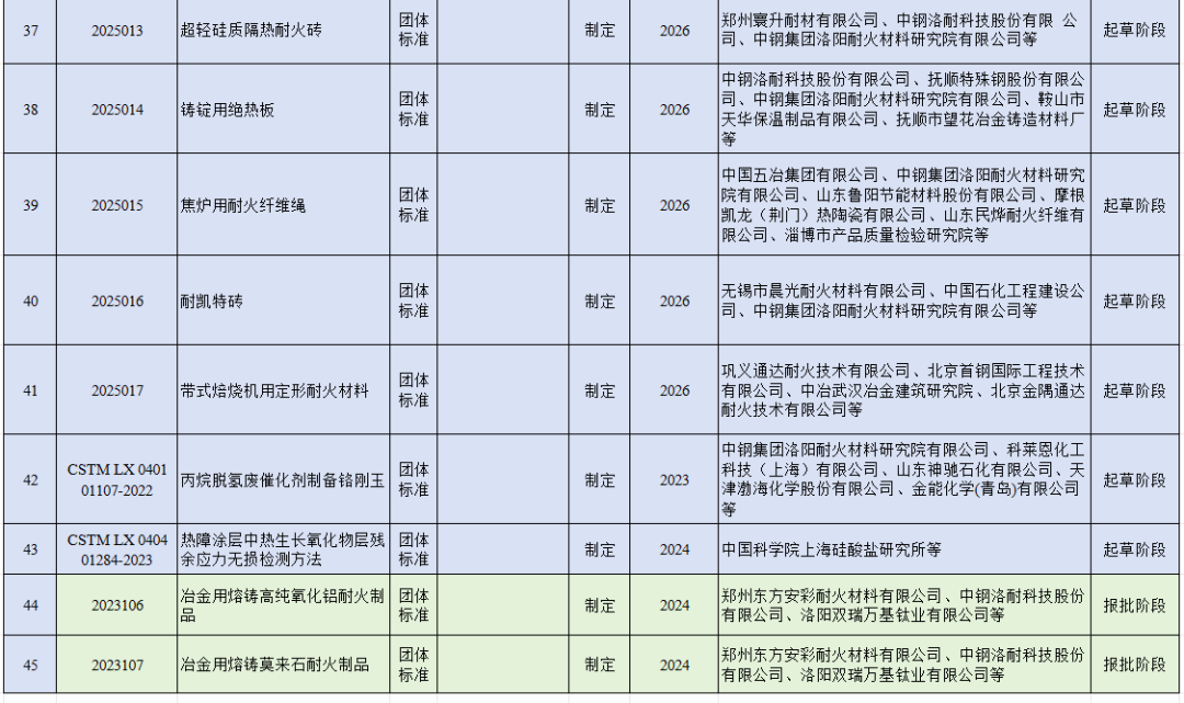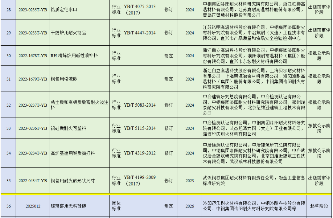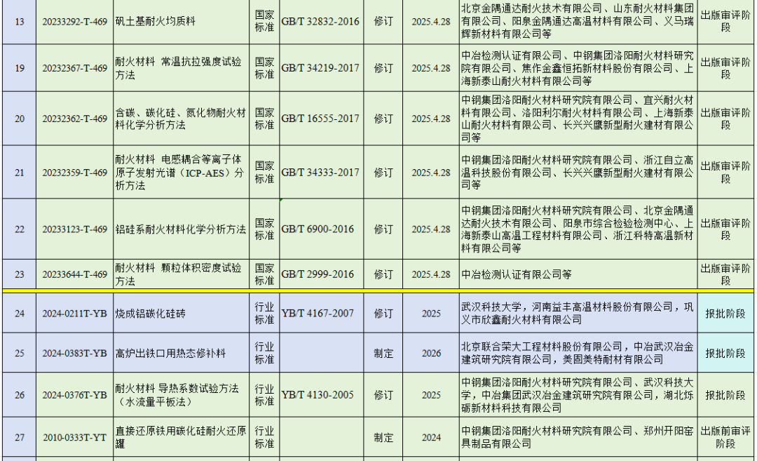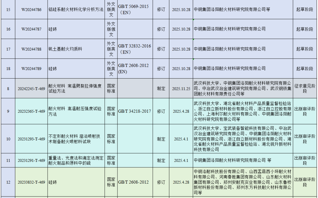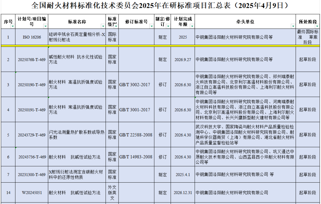 全國耐火材料標(biāo)準(zhǔn)化技術(shù)委員會(huì)2025年在研標(biāo)準(zhǔn)項(xiàng)目匯總表(2025年4月9日)