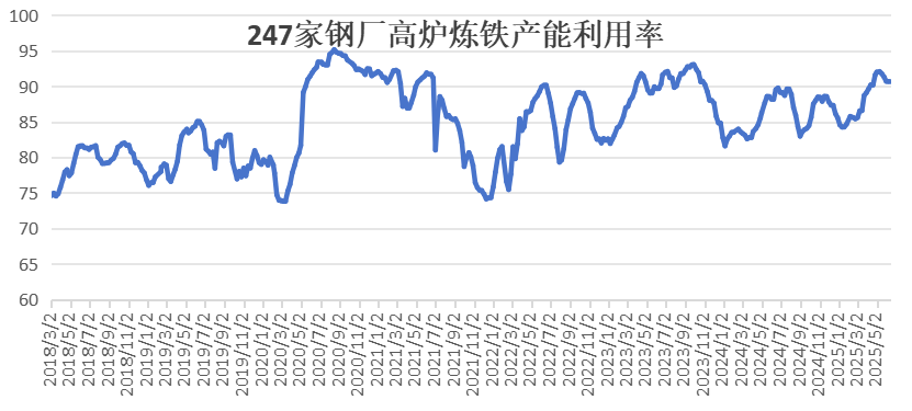 目前樣本鋼企高爐煉鐵產(chǎn)能利用率90.58%,環(huán)比下降0.07%,日均鐵水產(chǎn)量241.61萬噸,環(huán)比減少0.19萬噸,鐵水產(chǎn)量持續(xù)下降,但依舊維持在240+的水平,且鋼企有利潤的情況下,未來產(chǎn)量即使下降幅度也會較小。