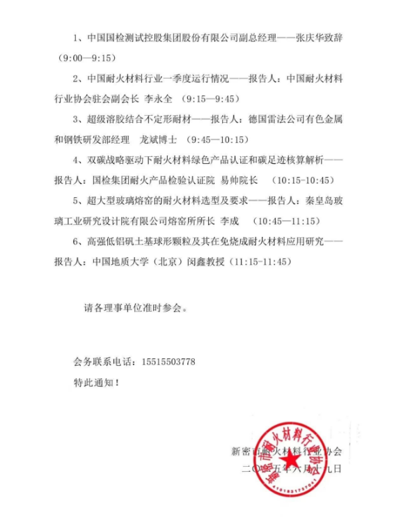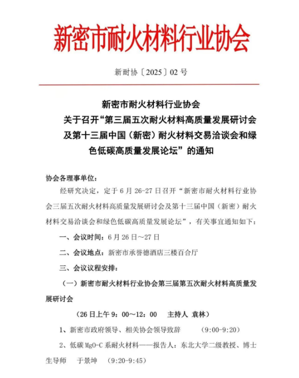 關(guān)于召開“第三屆五次耐火材料高質(zhì)量發(fā)展研討會及第十三屆中國(新密)耐火材料交易洽談會和綠色低碳高質(zhì)量發(fā)展論壇”的通知?