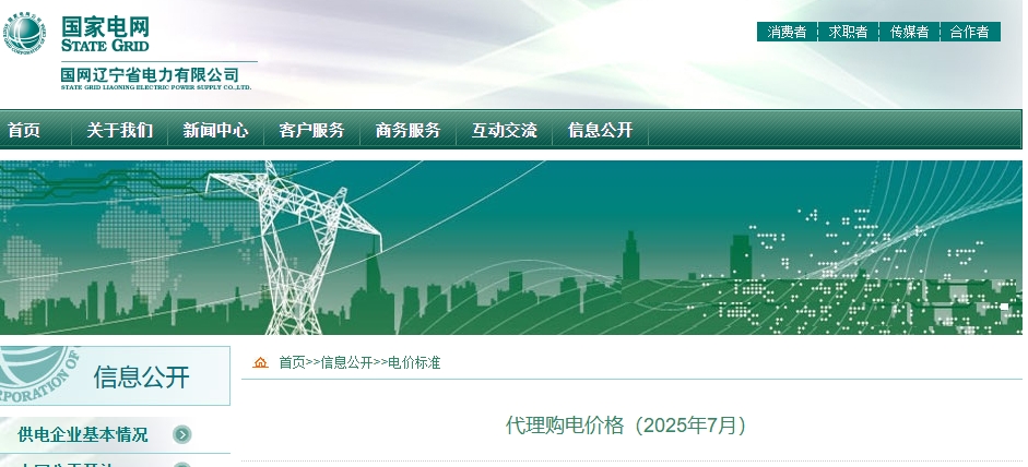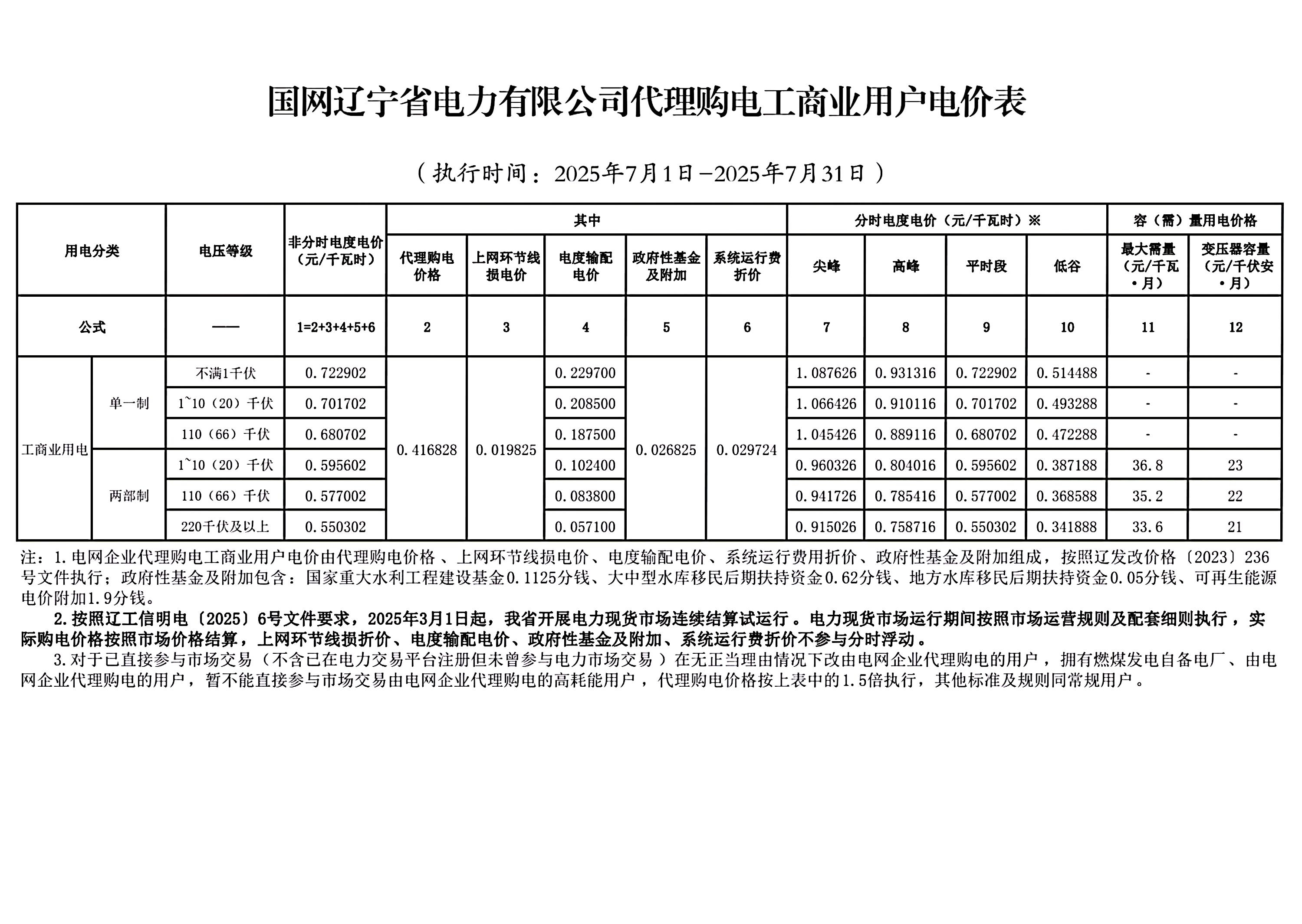 國網(wǎng)遼寧省電力有限公司代理購電工商業(yè)用戶電價(jià)表(2025年7月)