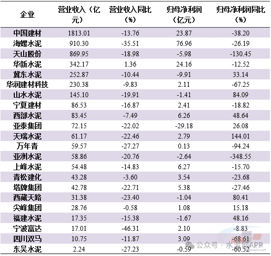 一、上市公司業(yè)績:多數(shù)營利雙降 部分虧損較大從營收情況看,22家上市公司中僅華新1家營收實(shí)現(xiàn)增長,21家現(xiàn)下降。營收超千億的公司僅有中國建材1家。華新水泥堅(jiān)持“一體化轉(zhuǎn)型發(fā)展、海外發(fā)展、新型建材業(yè)務(wù)拓展、傳統(tǒng)工業(yè)+數(shù)字化創(chuàng)新”的發(fā)展戰(zhàn)略,其中一體化轉(zhuǎn)型發(fā)展和海外發(fā)展是戰(zhàn)略重點(diǎn),特別是海外發(fā)展取得新突破,截至2024年底,華新水泥海外熟料產(chǎn)能近1700萬噸,超越海螺,僅次于臺泥,海外水泥銷量1620萬噸,同比增長37%,銷量大增帶動(dòng)下,海外營業(yè)收入79.84億元,同比增長47%,全年公司營收逆市上揚(yáng)。21家下降公司中,降幅超過20%的有9家,其中龍頭海螺降幅近36%,幅度相當(dāng)大,主要是其他業(yè)務(wù)大幅消減所致。