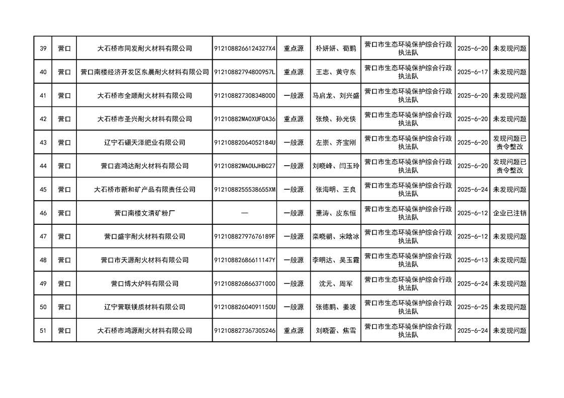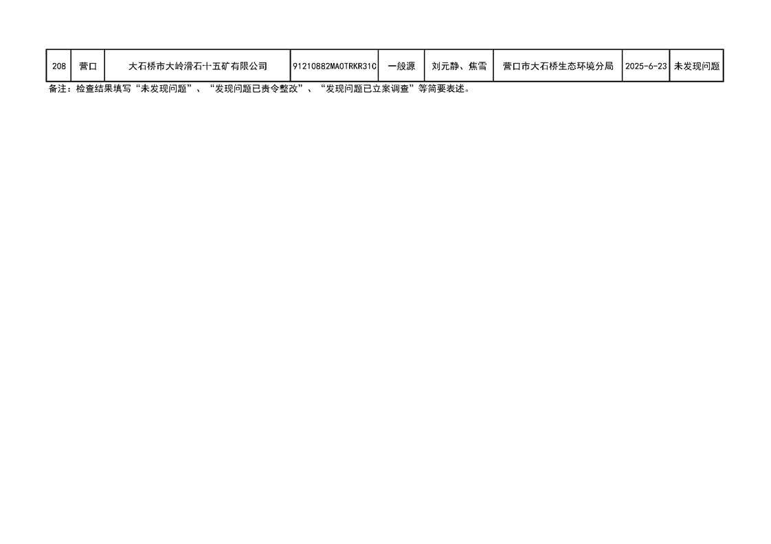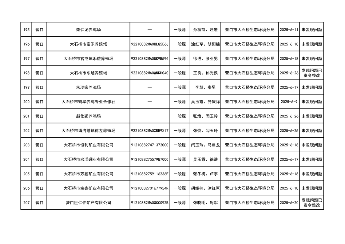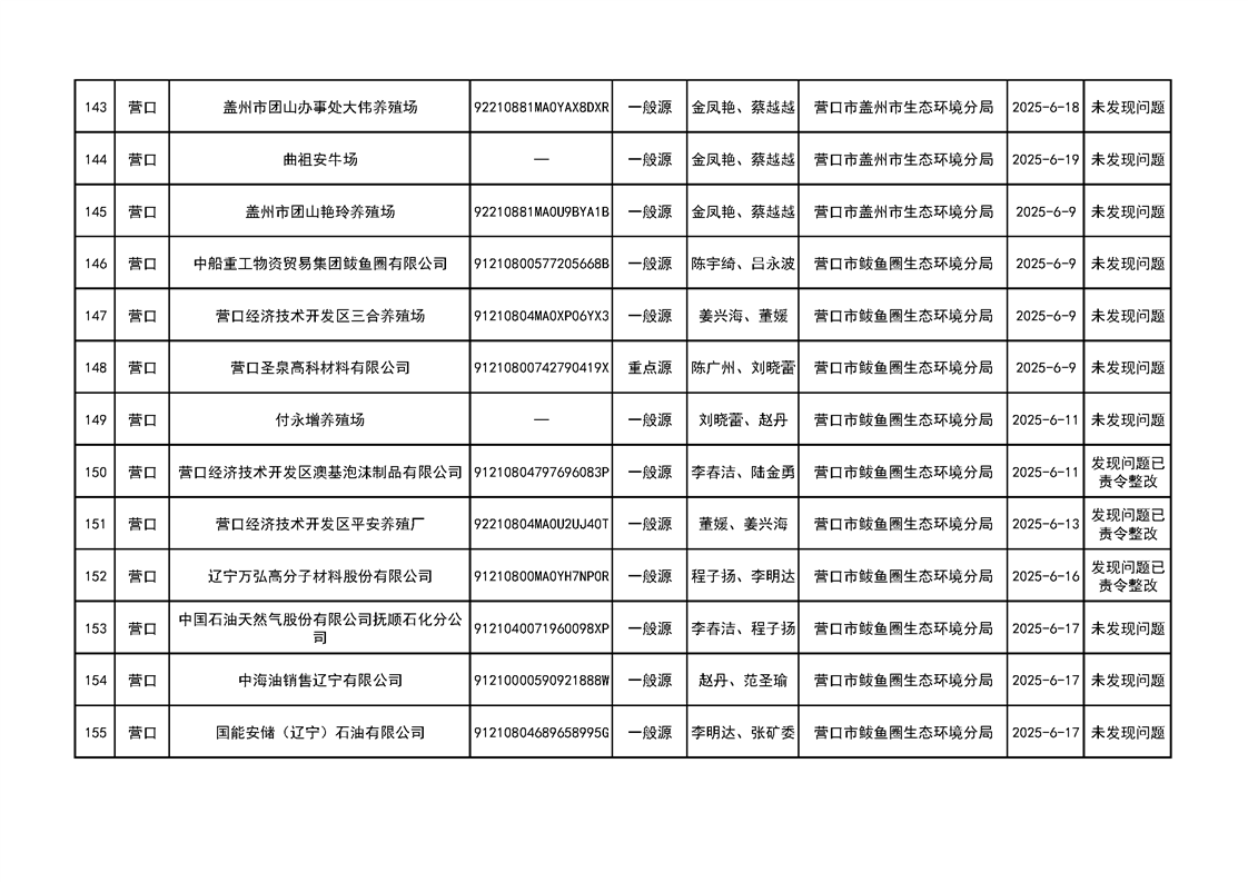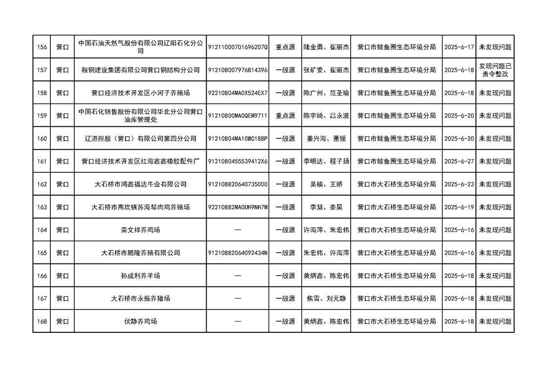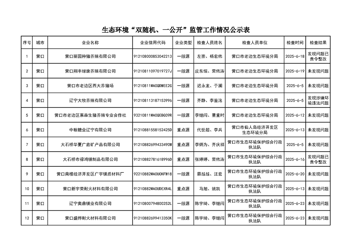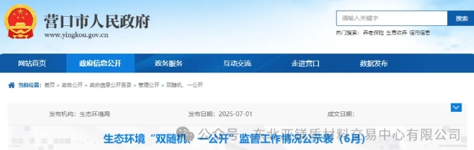 營口市生態(tài)環(huán)境“雙隨機(jī)、一公開”監(jiān)管工作情況公示表(6月)