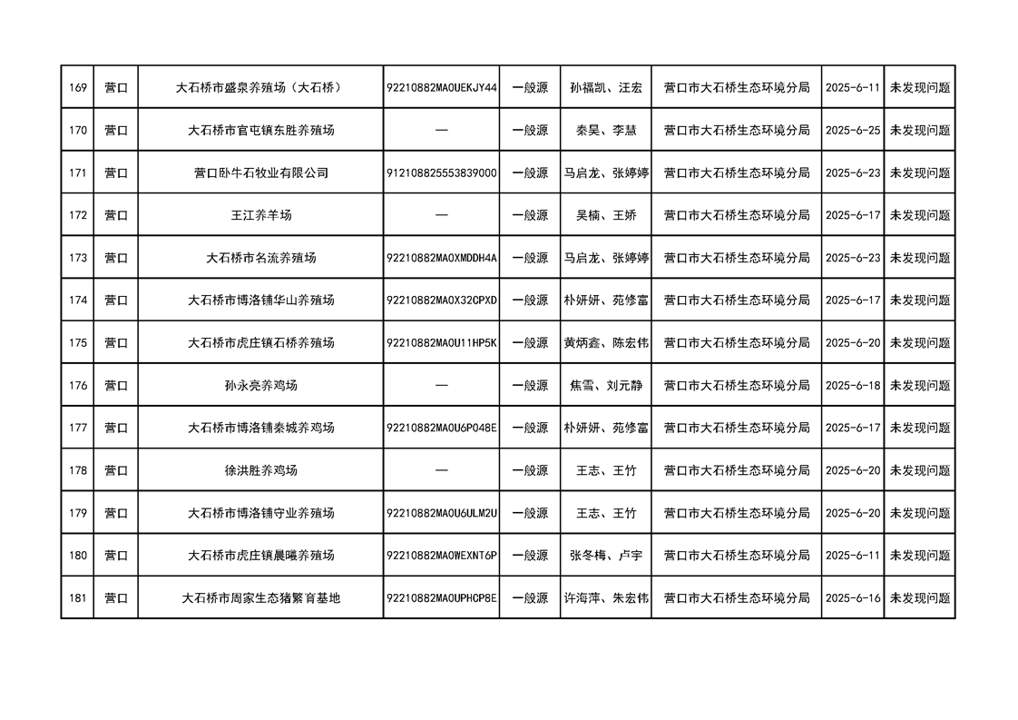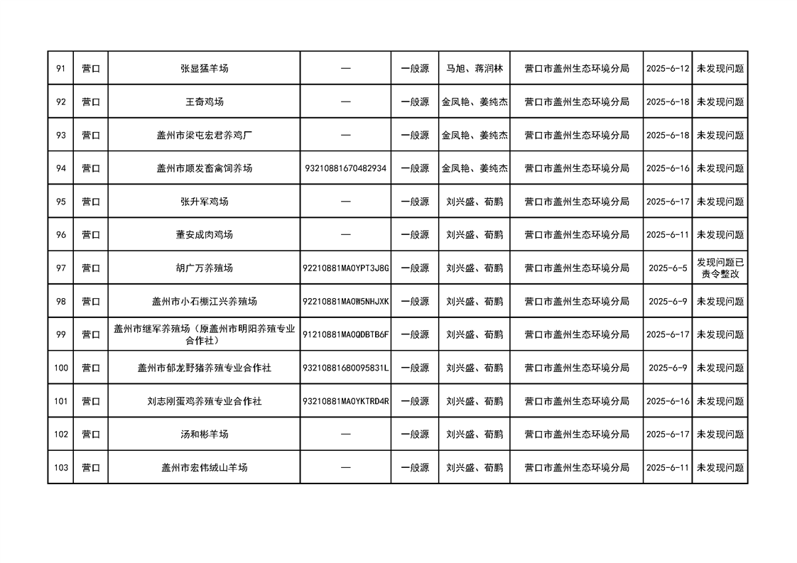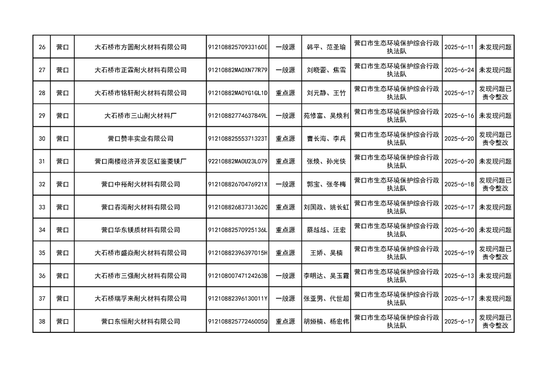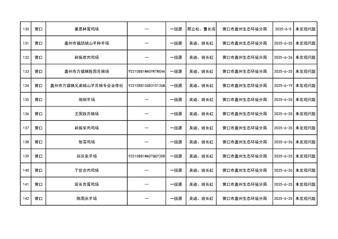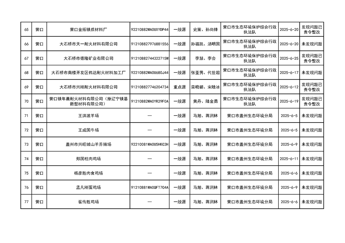 營口市生態(tài)環(huán)境“雙隨機(jī)、一公開”監(jiān)管工作情況公示表(6月)