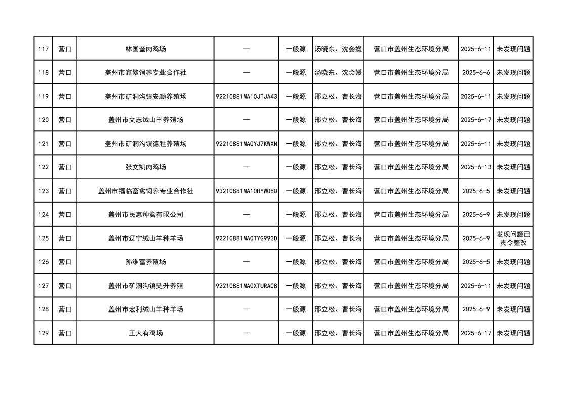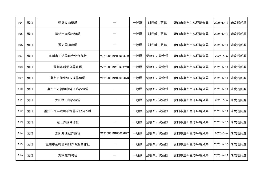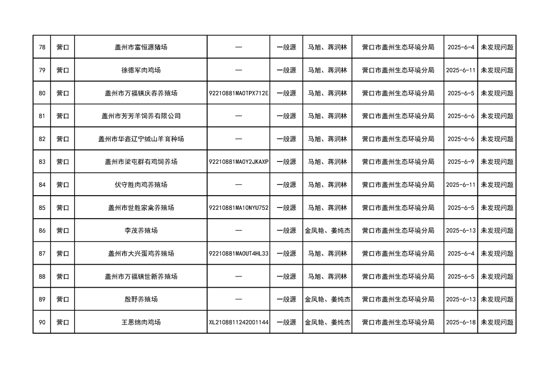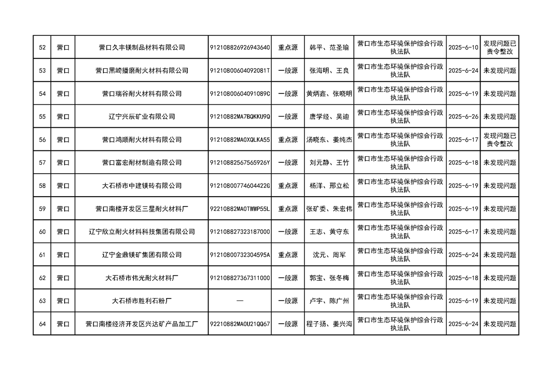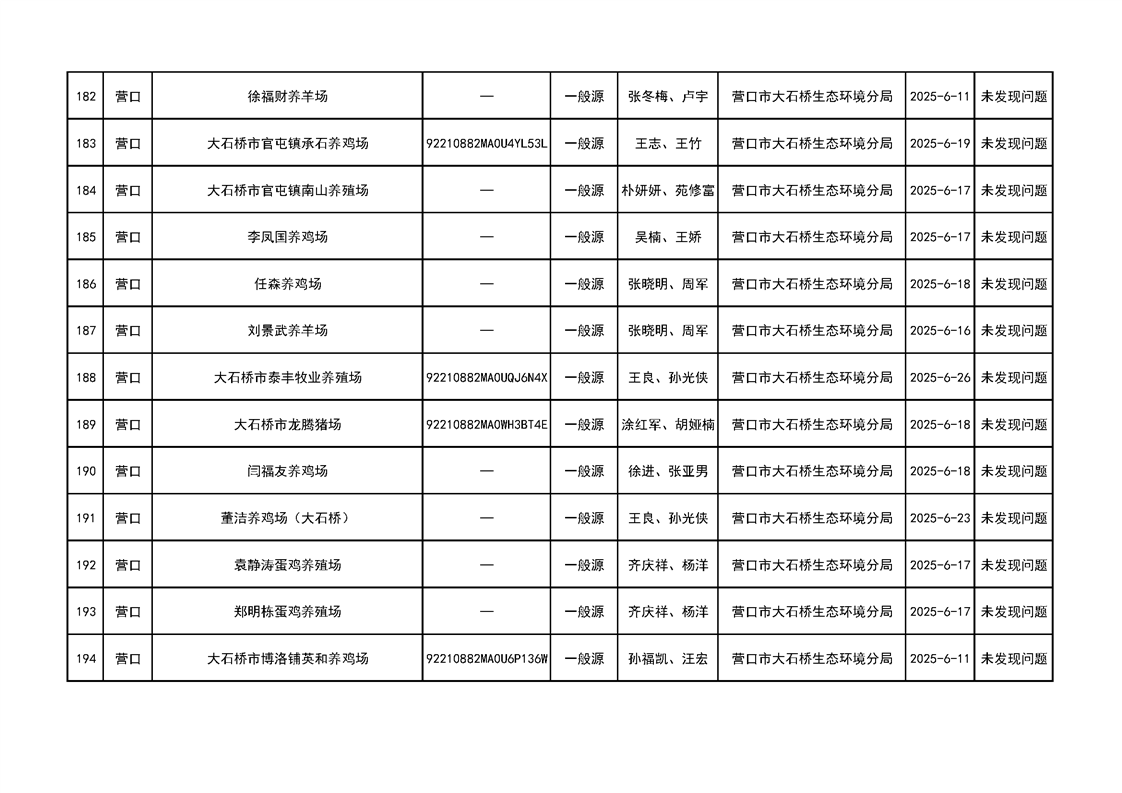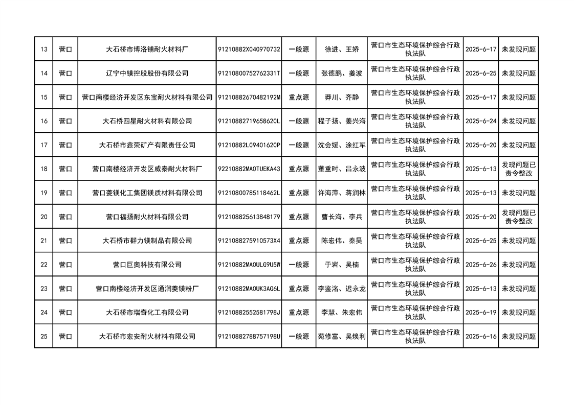 營口市生態(tài)環(huán)境“雙隨機(jī)、一公開”監(jiān)管工作情況公示表(6月)