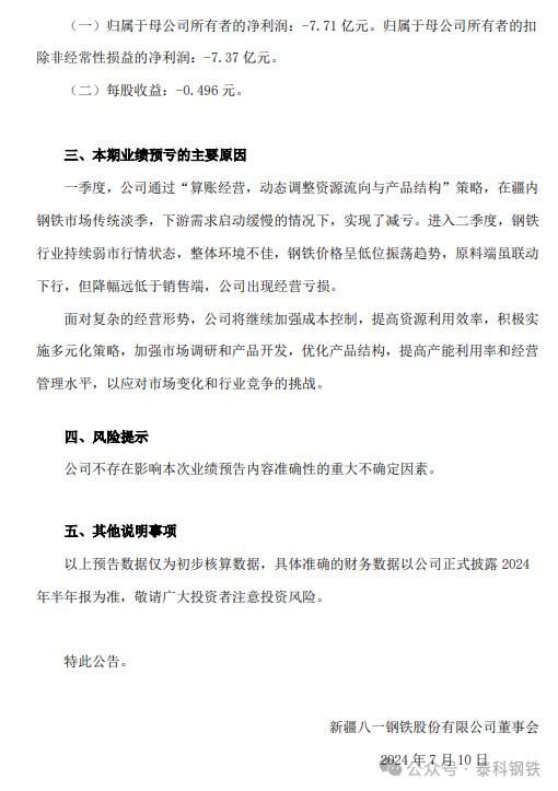 公告稱,一季度,公司通過(guò)“算賬經(jīng)營(yíng),動(dòng)態(tài)調(diào)整資源流向與產(chǎn)品結(jié)構(gòu)”策略,在疆內(nèi)鋼鐵市場(chǎng)傳統(tǒng)淡季,下游需求啟動(dòng)緩慢的情況下,實(shí)現(xiàn)了減虧。進(jìn)入二季度,鋼鐵行業(yè)持續(xù)弱市行情狀態(tài),整體環(huán)境不佳,鋼鐵價(jià)格呈低位振蕩趨勢(shì),原料端雖聯(lián)動(dòng)下行,但降幅遠(yuǎn)低于銷售端,公司出現(xiàn)經(jīng)營(yíng)虧損。面對(duì)復(fù)雜的經(jīng)營(yíng)形勢(shì),公司將繼續(xù)加強(qiáng)成本控制,提高資源利用效率,積極實(shí)施多元化策略,加強(qiáng)市場(chǎng)調(diào)研和產(chǎn)品開發(fā),優(yōu)化產(chǎn)品結(jié)構(gòu),提高產(chǎn)能利用率和經(jīng)營(yíng)管理水平,以應(yīng)對(duì)市場(chǎng)變化和行業(yè)競(jìng)爭(zhēng)的挑戰(zhàn)。