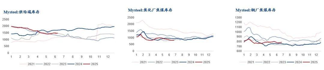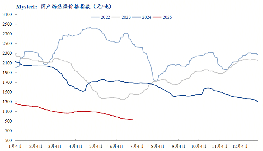 回顧2025年上半年的煉焦煤市場(chǎng),過(guò)剩的壓力和悲觀的預(yù)期依舊壓制煉焦煤持續(xù)下跌。雖然從下游鐵水?dāng)?shù)據(jù)來(lái)看,剛需較去年同比有所回升。但供應(yīng)過(guò)剩、市場(chǎng)信心缺失依舊導(dǎo)致煉焦煤價(jià)格延續(xù)去年單邊下行的行情走勢(shì),各煤種價(jià)格已降至8年內(nèi)新低。雖然在三月底四月初煤價(jià)出現(xiàn)曇花一現(xiàn)般短暫上漲,但總體跌勢(shì)不改,基本面矛盾持續(xù)加劇,市場(chǎng)悲觀情緒蔓延,投機(jī)市場(chǎng)活躍度持續(xù)降低,上游庫(kù)存持續(xù)高壓。展望下半年市場(chǎng),煤炭供應(yīng)在低價(jià)格壓制之下將有收縮預(yù)期,但煤礦全年生產(chǎn)任務(wù)仍需完成,國(guó)內(nèi)煤炭大幅減產(chǎn)難度較大,進(jìn)口煤需求下滑,通關(guān)量有小幅減量的可能。而需求側(cè)鋼廠由于盈利狀況尚可,短期高爐減產(chǎn)力度不大,但隨著成材消費(fèi)下滑以及出口壓力加大,下半年鐵水產(chǎn)量環(huán)比下滑仍是大概率事件。因此下半年煉焦煤市場(chǎng)基本面仍將維持寬松格局,但由于煤價(jià)下行已逼近煤礦生產(chǎn)成本,高成本煉焦煤資源已被擠出,煉焦煤價(jià)格底部顯現(xiàn),煤礦讓利空間有限,預(yù)計(jì)行情降幅將小于上半年,煤價(jià)加速下跌的時(shí)期已經(jīng)過(guò)去,后續(xù)價(jià)格博弈將更為激烈,不排除階段性供需錯(cuò)配引發(fā)行情短期波動(dòng)。