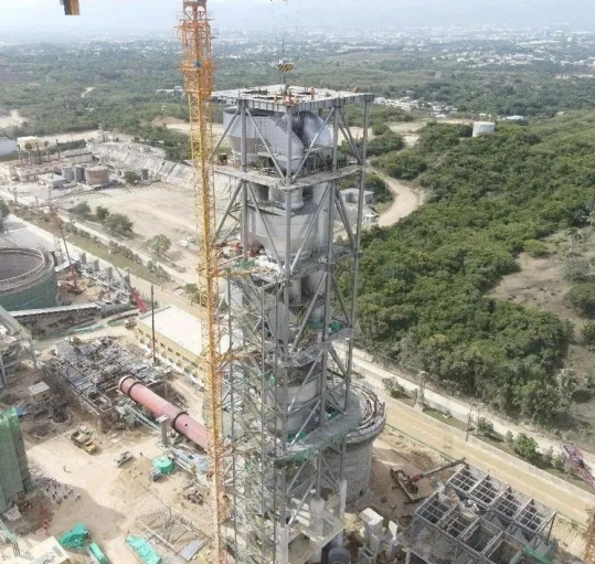 近日,由(天津水泥院)裝備集團(tuán)總承包的多米尼加CIBAO水泥5線(日產(chǎn)3500噸熟料)項目窯尾塔架順利封頂。CIBAO水泥公司管理團(tuán)隊、總包管理團(tuán)隊及分包單位和全體施工人員共同見證這一重要時刻。