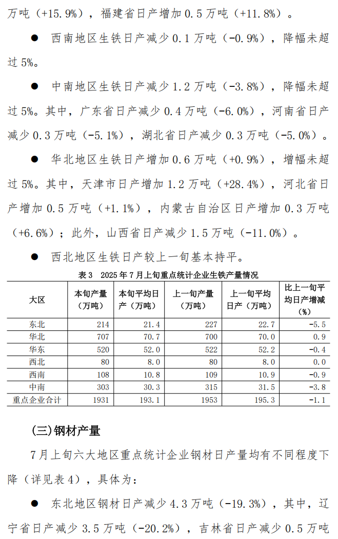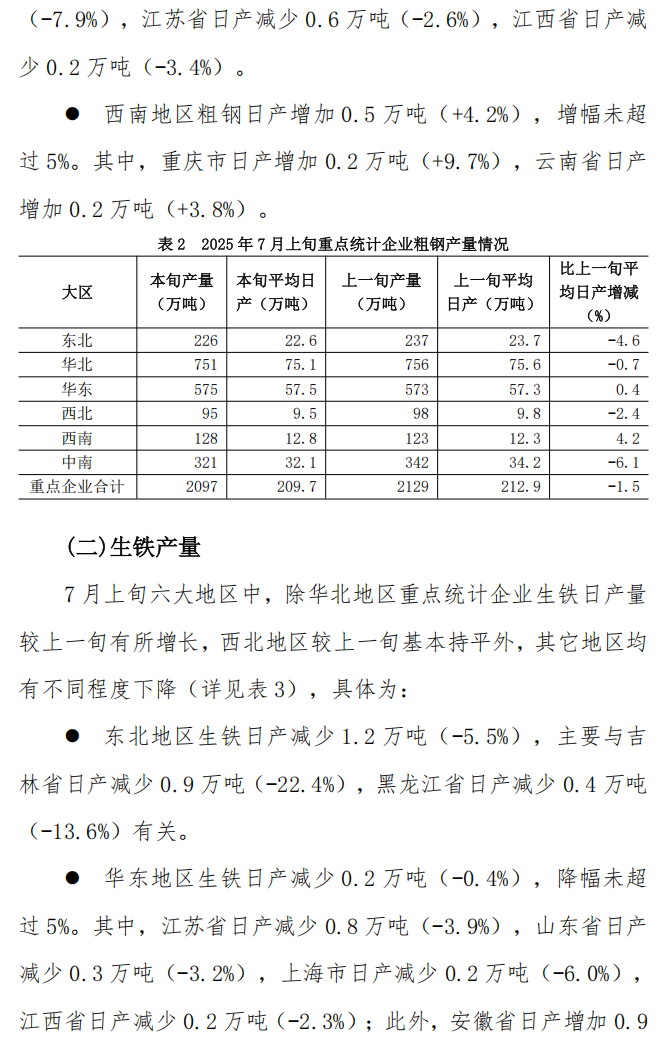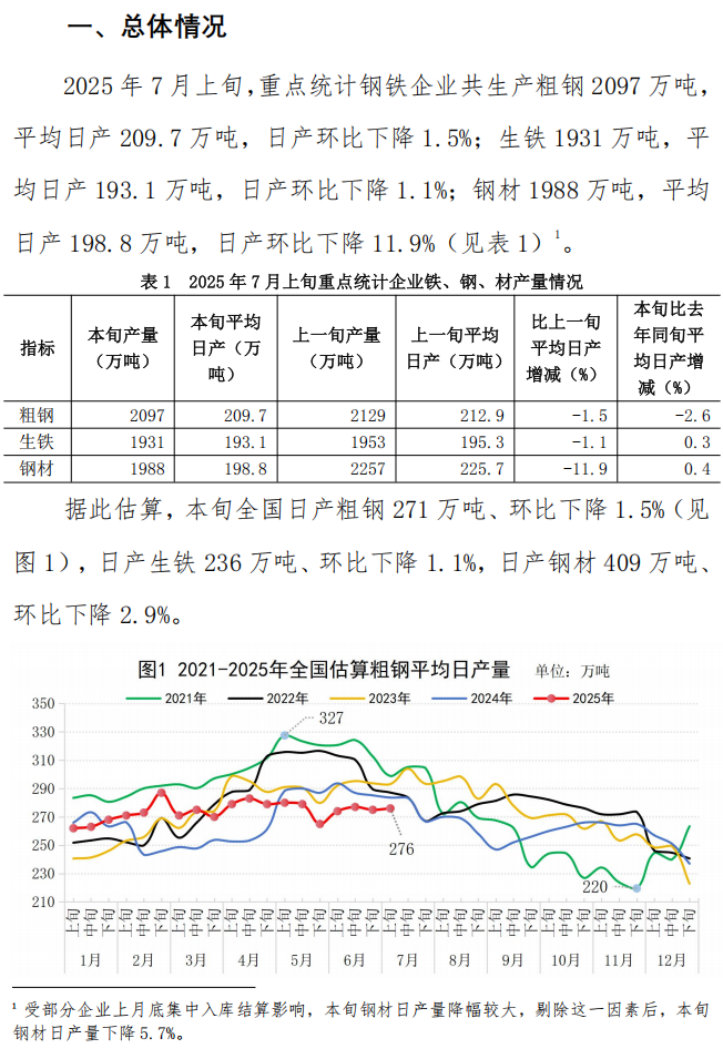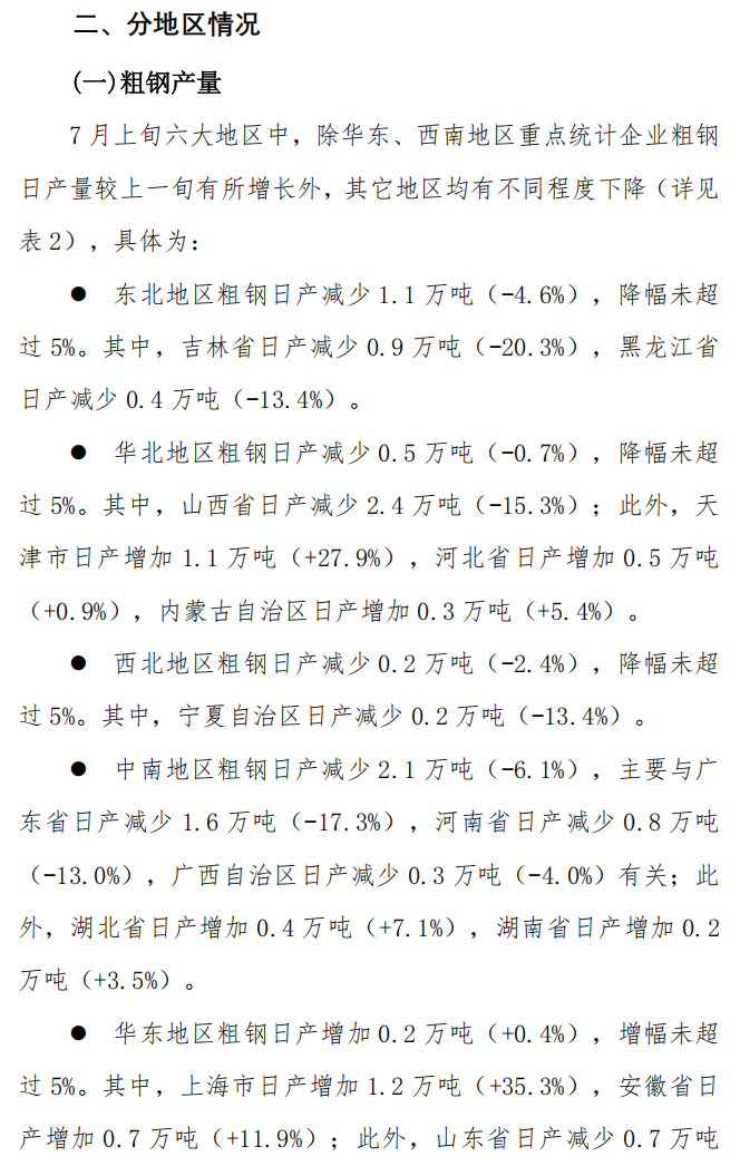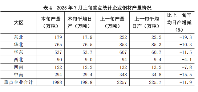 7月上旬重點(diǎn)統(tǒng)計(jì)企業(yè)鋼鐵產(chǎn)量旬報(bào)