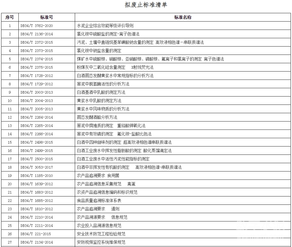 近日,安徽省市場(chǎng)監(jiān)督管理局標(biāo)準(zhǔn)化處發(fā)布《擬廢止安徽省地方標(biāo)準(zhǔn)的公示》稱,根據(jù)地方標(biāo)準(zhǔn)精簡評(píng)估結(jié)果,現(xiàn)將擬廢止《水泥企業(yè)綜合效能等級(jí)評(píng)價(jià)導(dǎo)則》等223項(xiàng)安徽省推薦性地方標(biāo)準(zhǔn)予以公示。