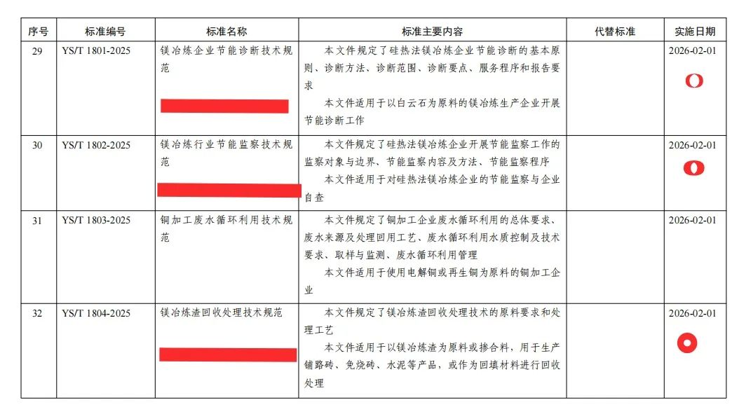 2025年7月8日,工業(yè)和信息化部正式公告批準(zhǔn)發(fā)布406項行業(yè)標(biāo)準(zhǔn),其中三項涉鎂——《鎂冶煉企業(yè)節(jié)能診斷技術(shù)規(guī)范》(YS/T 1801-2025)、《鎂冶煉行業(yè)節(jié)能監(jiān)察技術(shù)規(guī)范》(YS/T 1802-2025)及《鎂冶煉渣回收處理技術(shù)規(guī)范》(YS/T 1804-2025)——由府谷縣鎂工業(yè)協(xié)會牽頭,聯(lián)合府谷多家骨干鎂企及國內(nèi)重點鎂企、頂尖研究機構(gòu)共同編制,并將于2026年2月1日起全面實施。此次獲批的行業(yè)標(biāo)準(zhǔn)填補了我國鎂冶煉領(lǐng)域節(jié)能診斷、監(jiān)察及固廢資源化利用的技術(shù)空白,標(biāo)志著府谷鎂產(chǎn)業(yè)在綠色低碳、循環(huán)發(fā)展道路上邁出關(guān)鍵一步,也為全國鎂行業(yè)高質(zhì)量發(fā)展樹立了“府谷樣板”。