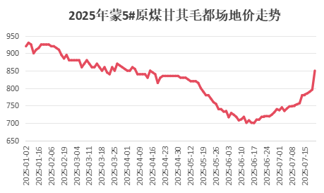 近期成交也明顯回暖,貿(mào)易商和下游終端開始加大補(bǔ)庫,蒙煤價(jià)格也同步上漲。截至7月23日,蒙5#原煤口岸報(bào)價(jià)900元/噸,較前期低點(diǎn)上漲200元/噸左右。競(jìng)拍表現(xiàn)同樣強(qiáng)勢(shì),本月8日進(jìn)行了三場(chǎng)Erdenes Tavantolgoi JSC公司的蒙5#原煤競(jìng)拍,全部溢價(jià)成交,成交價(jià)分別為87.7$/噸、88.2$/噸、90.2$/噸,總成交量22.4萬噸。