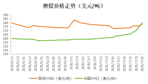 澳煤價(jià)格上漲的原因除了印度少量需求釋放也有中國(guó)市場(chǎng)煉焦煤現(xiàn)貨、期貨的不斷上漲的帶動(dòng),整體看中國(guó)市場(chǎng)的好轉(zhuǎn)尚未到達(dá)大幅采購(gòu)海運(yùn)煤的程度,但是部分參與者認(rèn)為宏觀經(jīng)濟(jì)預(yù)期的好轉(zhuǎn)以及國(guó)家能源局發(fā)布的核查超產(chǎn)文件,會(huì)帶動(dòng)國(guó)內(nèi)焦煤價(jià)格繼續(xù)上漲,情緒較為高脹。終端鋼廠尚能采購(gòu)長(zhǎng)協(xié)煤,對(duì)海運(yùn)煤的需求有限,但是隨著價(jià)差的縮小也有部分市場(chǎng)參與者對(duì)海運(yùn)煤釋放了采購(gòu)興趣。此外印度也釋放了采購(gòu)9月貨物的需求,貿(mào)易商也在采購(gòu)9月到達(dá)的貨物,上周五有貿(mào)易商以178美元/噸的離岸價(jià)格,采購(gòu)了7.5萬(wàn)噸低揮發(fā)優(yōu)質(zhì)澳煤,發(fā)貨日期未定。他們預(yù)計(jì)印度會(huì)有需求,因此澳煤供應(yīng)商報(bào)價(jià)小幅上漲。