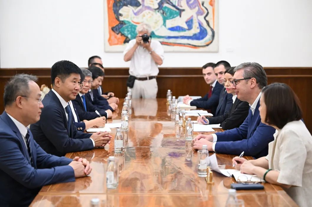 塞爾維亞當(dāng)?shù)貢r間7月24日,塞爾維亞總統(tǒng)武契奇在貝爾格萊德會見河鋼集團(tuán)董事長劉鍵。中國駐塞爾維亞大使李明,塞爾維亞副總理兼經(jīng)濟(jì)部長阿德里亞娜·梅薩羅維奇、內(nèi)外貿(mào)易部部長婭戈達(dá)·拉扎雷維奇,河鋼集團(tuán)總會計(jì)師胡志剛參加會見。