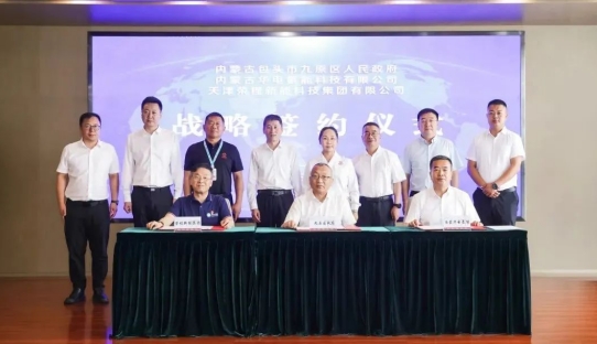 包頭市九原區(qū)委書記劉俊義、區(qū)人大常委會主任劉石,榮程集團董事會主席張榮華,華電內(nèi)蒙古能源有限公司副總經(jīng)理焦佳,包頭市交通運輸服務(wù)中心主任魏罡,北方氫能科技創(chuàng)新研究中心李志剛,榮程集團董事、副總裁、榮程新能集團董事長張立華等見證簽約。包頭市新材料產(chǎn)業(yè)園區(qū)管委會副主任曹永維,內(nèi)蒙古華電氫能公司黨委書記、董事王新宇,榮程集團常務(wù)副總裁、榮程新能集團總經(jīng)理陸才垠分別代表三方簽約。