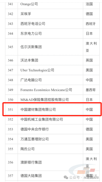 其中,中國建材集團(tuán)有限公司排名第351位。
