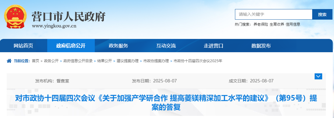 貴委提出的《關(guān)于加強(qiáng)產(chǎn)學(xué)研合作 提高菱鎂精深加工水平的建議》已收悉,現(xiàn)答復(fù)如下: