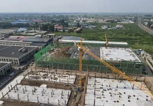烈日炎炎,遼陽興旺石墨制品有限公司新建年產(chǎn)8000噸高端新材料項目建設現(xiàn)場,施工者不畏高溫加緊施工。