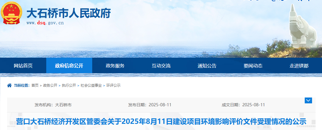 根據(jù)建設(shè)項(xiàng)目環(huán)境影響評(píng)價(jià)審批程序的有關(guān)規(guī)定,2025年8月11日我局受理1個(gè)建設(shè)項(xiàng)目環(huán)境影響評(píng)價(jià)文件?,F(xiàn)將受理情況予以公示,公示期為2025年8月11日-2025年8月14日(3個(gè)工作日)。