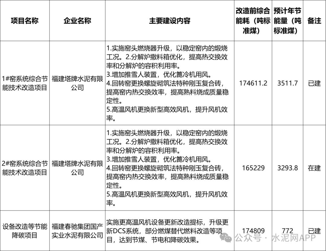 其中福建塔牌水泥有限公司、福建春馳集團(tuán)國產(chǎn)實業(yè)水泥有限公司項目入選。