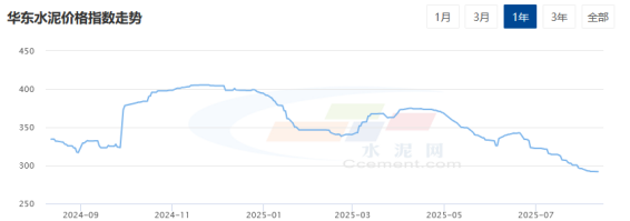 華東地區(qū)水泥價(jià)格指數(shù)近兩月持續(xù)走低
