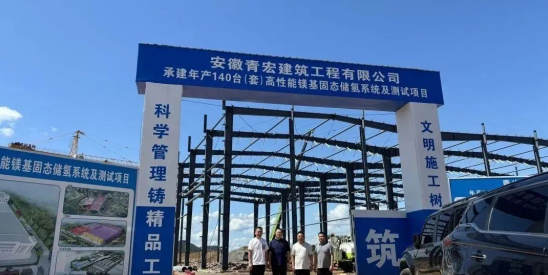 2025 年 8 月 15 日上午,安徽鎂源智能裝備有限公司年產(chǎn) 140 臺(tái)套高性能鎂基固態(tài)儲(chǔ)氫系統(tǒng)及測試項(xiàng)目 1# 廠房鋼結(jié)構(gòu)工程順利封頂。青陽開發(fā)區(qū)管委會(huì)陳穗主任、張懿君副主任;浙江鎂源動(dòng)力科技有限公司董事長陳哲、總經(jīng)理劉兵銀;安徽青宏建筑工程有限公司董事長王偉、副總經(jīng)理胡孫洪等出席儀式。