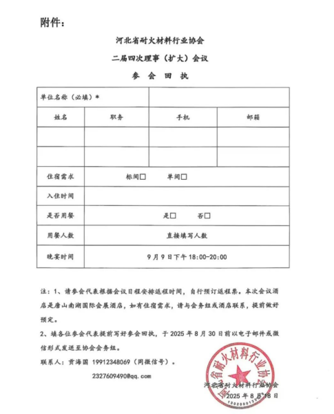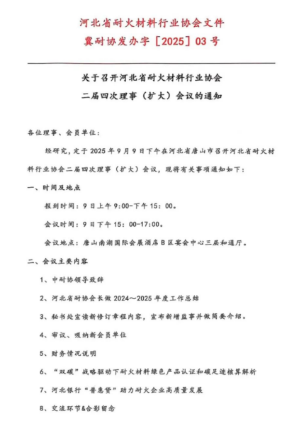 關(guān)于召開河北省耐火材料行業(yè)協(xié)會二屆四次理事(擴大)會議的通知