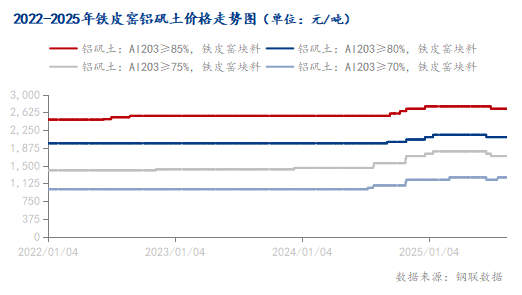 圖1 2022-2025年鐵皮窯鋁礬土價(jià)格走勢圖