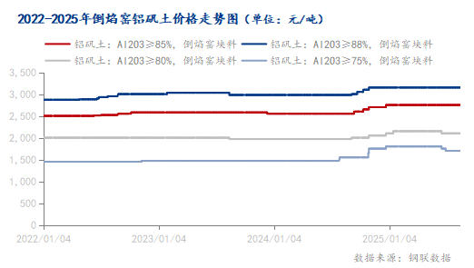 圖3 2022-2025年倒焰窯鋁礬土價(jià)格走勢圖