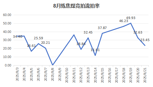 八月中旬起,煉焦煤市場(chǎng)開(kāi)始出現(xiàn)明顯轉(zhuǎn)弱態(tài)勢(shì)。線上競(jìng)拍波動(dòng)明顯,參與競(jìng)拍的煉焦煤礦掛牌場(chǎng)次眾多,總計(jì)掛牌量數(shù)量可觀,但市場(chǎng)情緒低迷,流拍率較前期大幅增加。