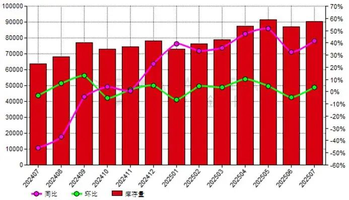 7月份中國(guó)棕剛玉生產(chǎn)商庫(kù)存棕剛玉為90,200.00公噸,去年同期為63,800.00公噸,上月為87,200.00公噸,同比增加41.38%,環(huán)比增加3.44%。