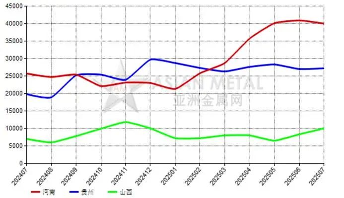 7月份,中國(guó)棕剛玉庫(kù)存量最大的三個(gè)省份為河南、貴州和山西。河南庫(kù)存棕剛玉為40,000.00公噸,同比增加55.64%,環(huán)比減少2.20%。貴州庫(kù)存棕剛玉為27,200.00公噸,同比增加37.37%,環(huán)比增加0.74%。山西庫(kù)存棕剛玉為10,000.00公噸,同比增加42.86%,環(huán)比增加20.48%。