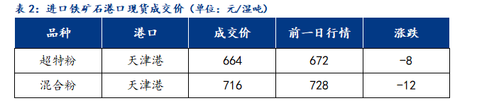 供應方面,目前天津港口可貿(mào)易資源庫存有所下降,中品粉資源有所減少,塊礦資源有所補充。