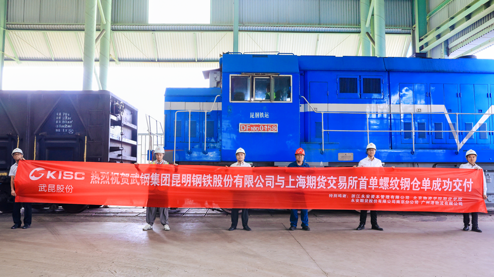 8月4日,在武昆股份營(yíng)銷(xiāo)中心和物流部的共同見(jiàn)證下,一列滿載螺紋鋼的專列從武昆股份安寧基地高棒成品庫(kù)緩緩駛出,順利完成與上海期貨交易所的首單螺紋鋼倉(cāng)單交付。