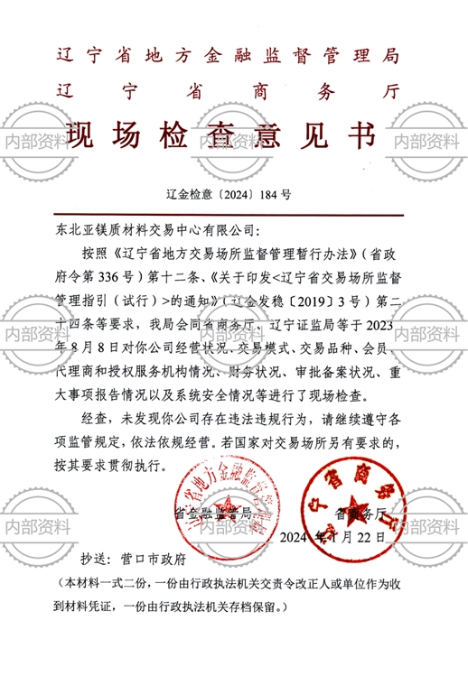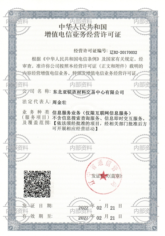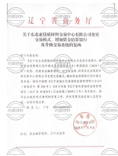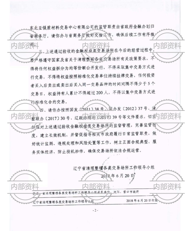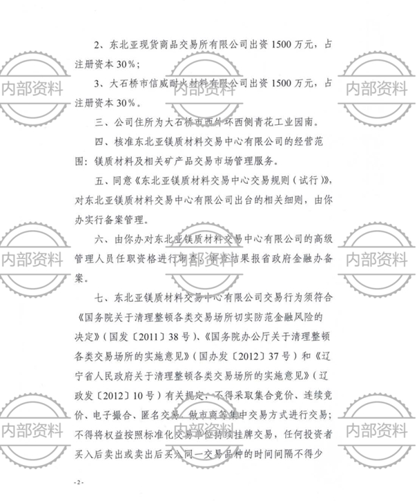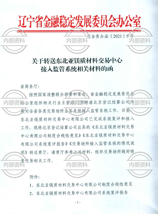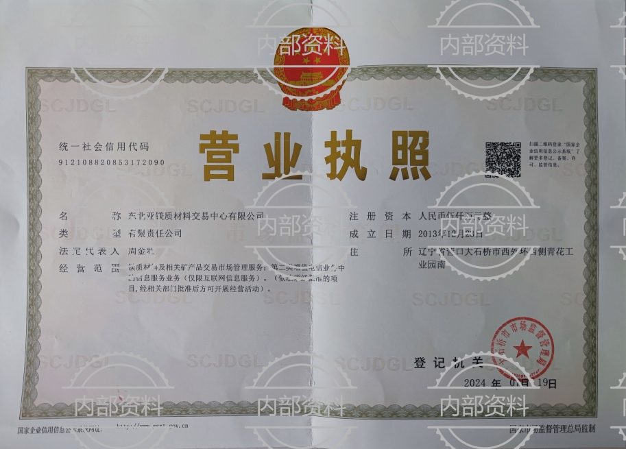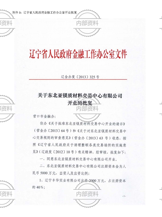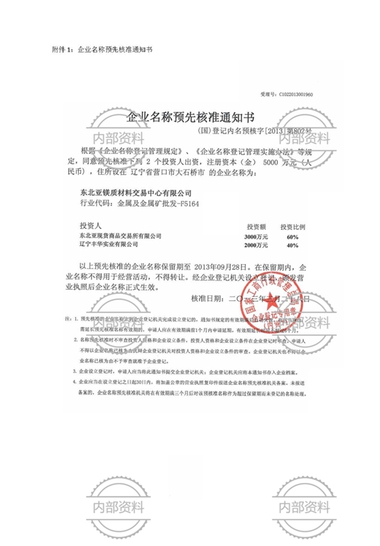 東北亞鎂質(zhì)材料交易中心資質(zhì)文件